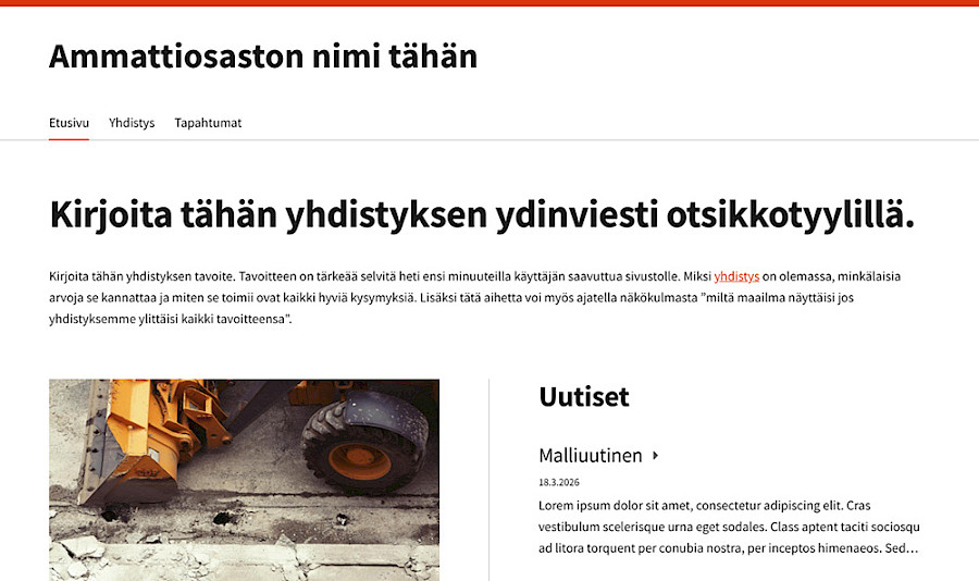 Käyttöön veloituksetta Rakennusliiton osastoille suunniteltu ulkoasu